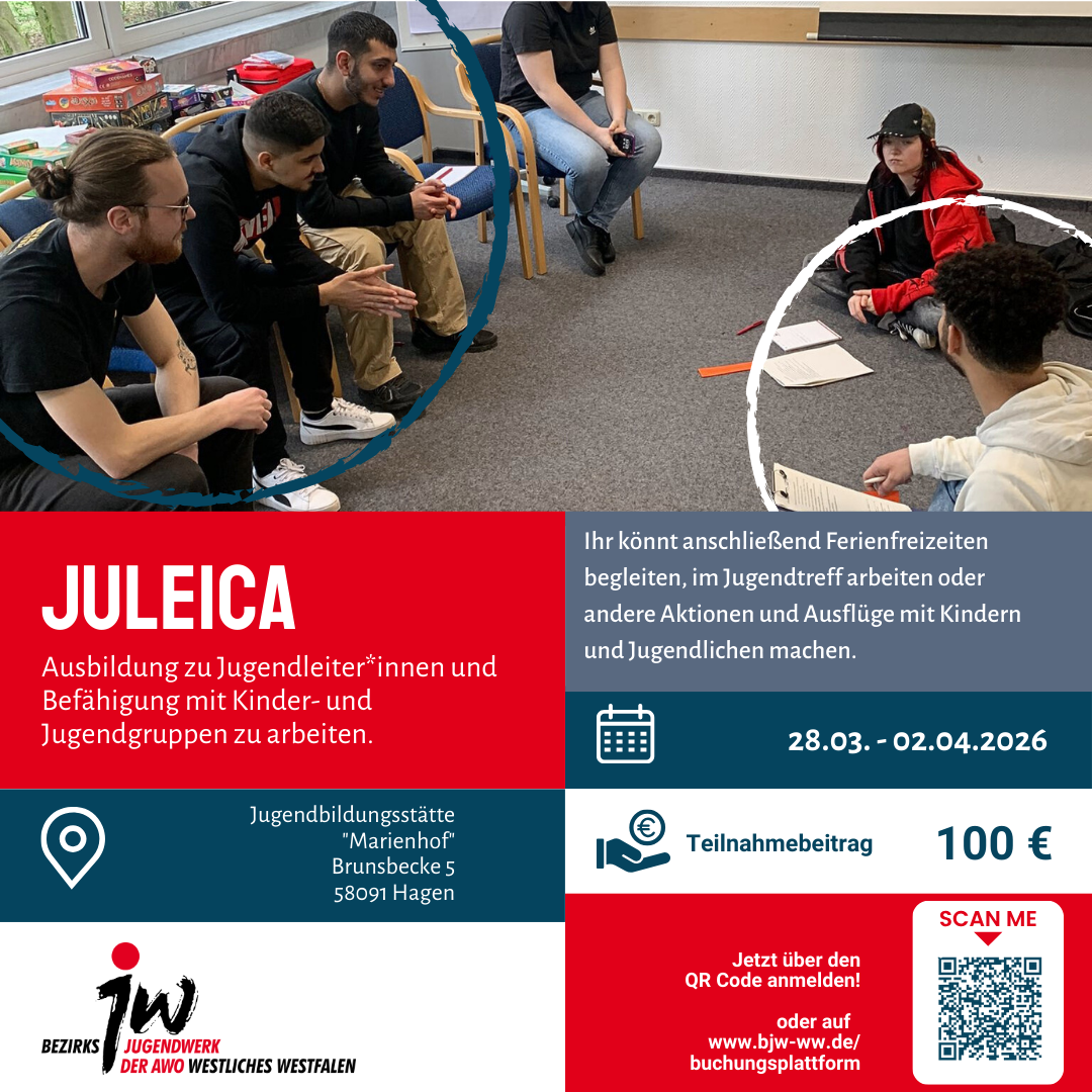 Ausbildung zu Jugendleiter*innen und Befähigung mit Kinder- und Jugendgruppen zu arbeiten vom 28.03.-02.04.2026 in Hagen.